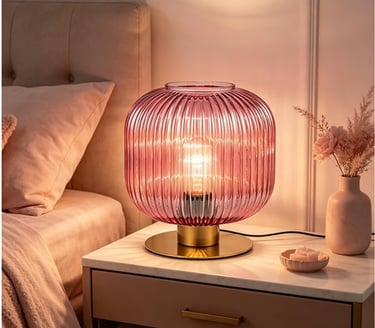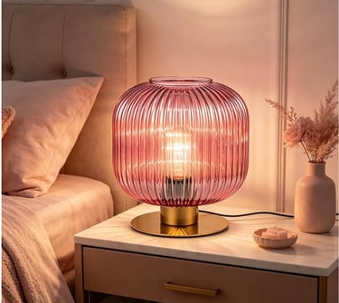 Buy NowSmall Bedside Table Lamp, Pink Bedside Lamp Globe Table Lamps with Striped Glass Shade, Modern Bedroom Nightstand Lamp Living Room Side Table Lamp Decorative Table Lamps for Girls Women