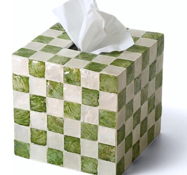CHI AN HOME 5.7" Square Tissue Box Cover, Handmade Checkered Cube Tissue Box Cover with Capiz Shells, Decorative Tissue Holder for Living Room, Bathroom, Bedroom or Office (Pistachio Green)