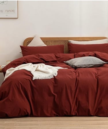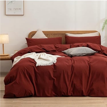 Buy NowBESTOUCH Duvet Cover Set 100% Washed Cotton Linen Feel Super Soft Comfortable Chic Lightweight 3 PCs Home Bedding Set Solid Fired Brick Red Queen
