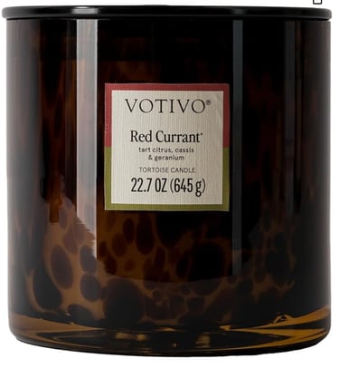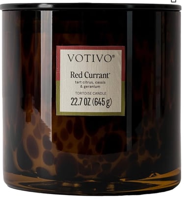 Buy NowVotivo Red Currant Tortoise Scented Candle | 22.7 oz Soy Wax Blend | Decorative Home Decor Tortoise Shell Pattern | 100 Hour Burn Time