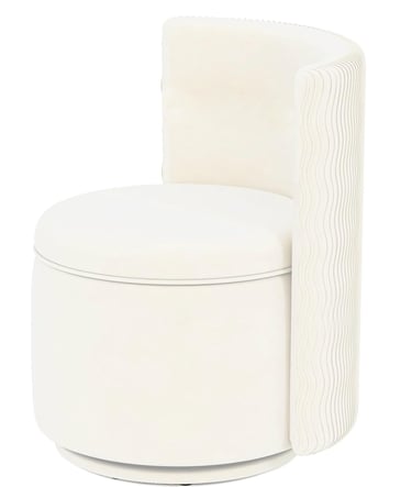 Buy Nowallamazing 360° Swivel Accent Chair with Storage, Vanity Stool with Back, Velvet Storage Ottoman, Upholstered Round Barrel Vanity Chair for Living Room, Makeup Room, Bedroom (White High-Back)
