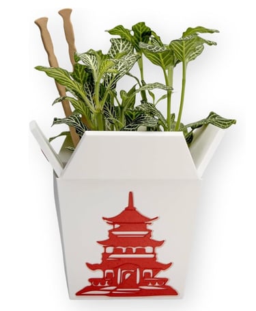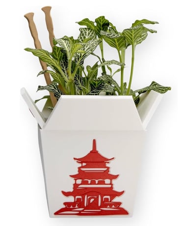 Buy NowPlant Pot for Indoor Plants, Chinese Take Out Box White Whit Two Chopsticks (Free) 3D Printed -Plastic -Unique Planter for Indoor with Drainage Hole- Made in USA (White)