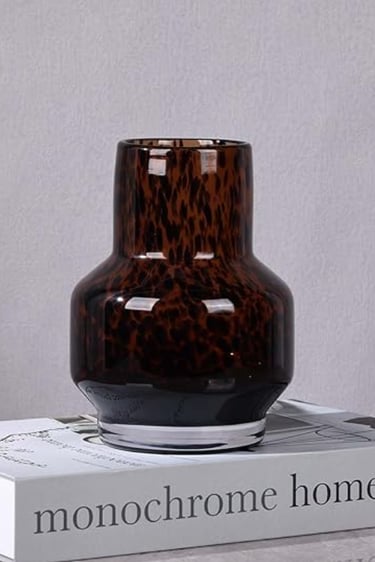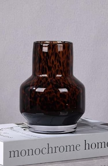 Buy NowAmber Vase – Brown Glass, Modern Clear Glass Vase with Wide Mouth for Flowers, Decorative Bottles for Home Decor, Farmhouse Centerpiece, Tortoise Shell Art Glass Vase for Living Room, Kitchen, Office